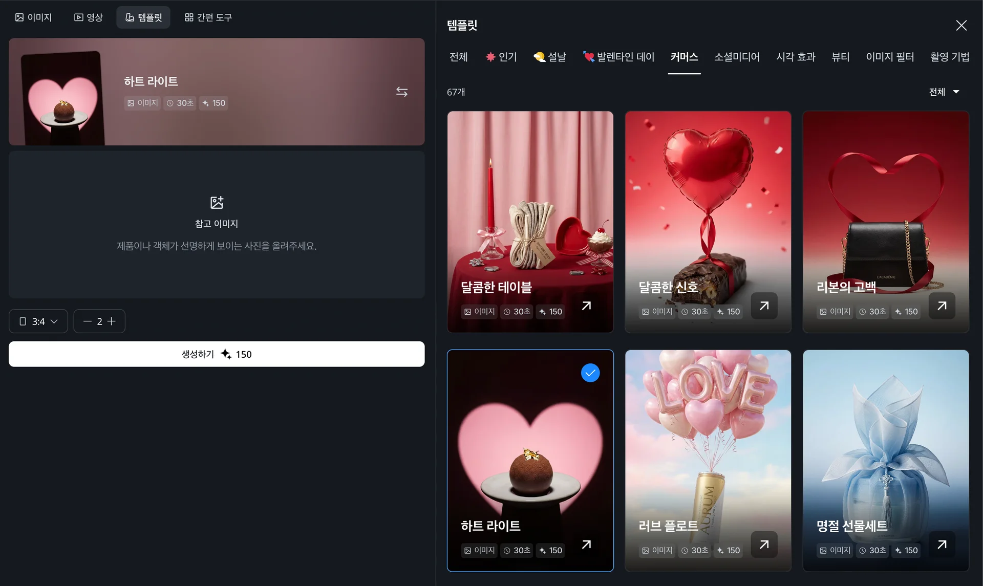 최근에는 프롬프트 없이도 편하게 이미지를 생성할 수 있는데요. 예를 들어 드롭샷 AI에서는 원하는 컨셉을 고르고 제품 사진 한 장만 넣으면 알아서 연출샷을 생성해주는 ‘템플릿’ 기능을 제공하고 있어요. 위 예시들처럼 퀄리티 좋은 이미지 소재를 빠르고 간편하게 만들 수 있습니다. 완성까지 정말 1분도 걸리지 않죠.