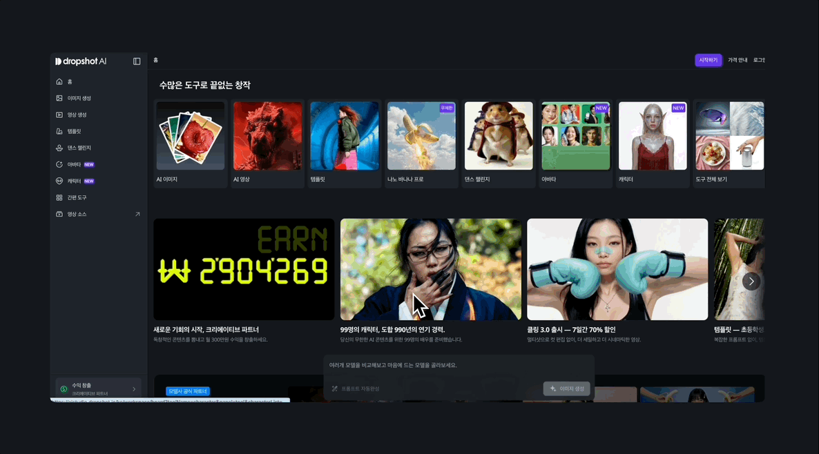 드롭샷 AI에 접속한 후, 이미지 생성을 눌러주세요.