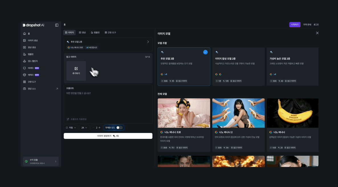 드롭샷 AI에서는 복잡한 설정 없이 프롬프트만 입력하면, 나노바나나 프로 모델로 이미지를 무제한 생성해볼 수 있습니다. 유행하는 스타일을 빠르게 실험하고 나만의 결과물로 확장해보고 싶다면 지금 드롭샷 AI에서 체험해보세요.