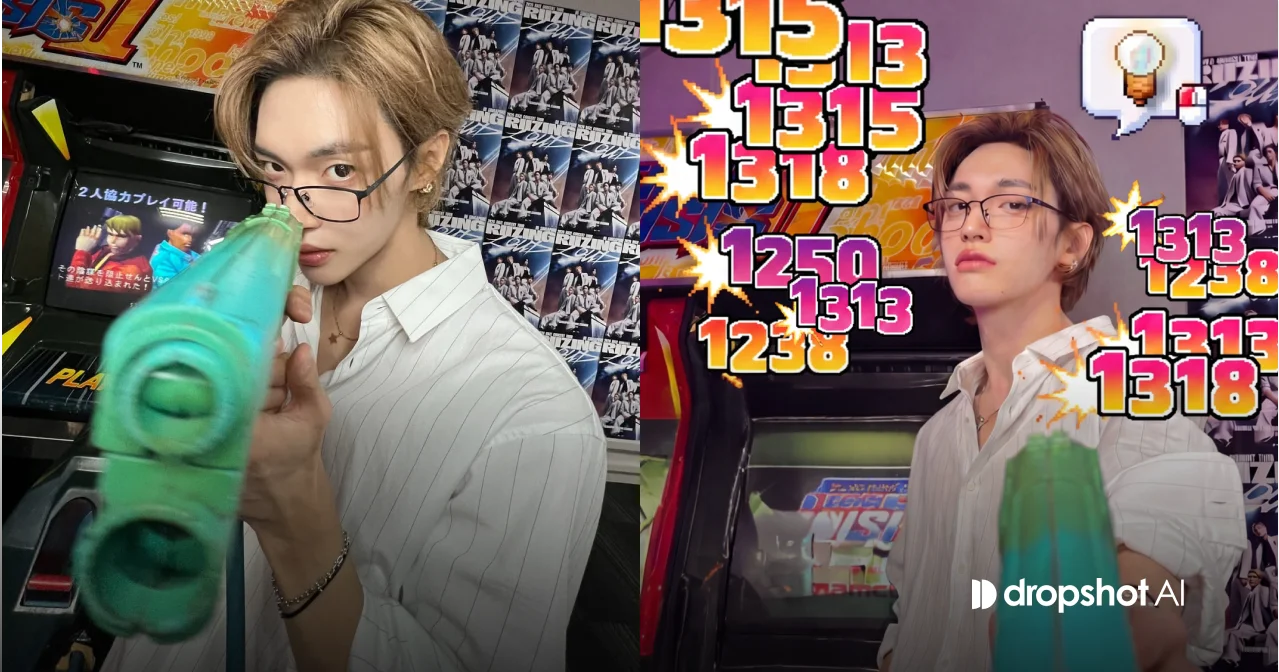 입력 이미지를 인물의 기준 정체성으로 사용한다. 얼굴의 형태, 비율, 피부톤, 헤어스타일의 인상과 나이대를 그대로 유지하며 전혀 다른 사람으로 변형하지 않는다. 인물의 포즈, 구도, 의상과 전체적인 분위기도 최대한 유지한다. 장면 위에는 메이플스토리 인게임 UI 요소가 현실 공간 위에 자연스럽게 합성되어 나타난다. 인물 머리 위에는 퀘스트 마크가 떠 있으며, 인물 쪽을 향해 살짝 튀어나온 꼬리 부분을 제외하면 말풍선 본체는 완전한 정사각형 비율을 가진다. 말풍선 내부에는 픽셀 스타일의 전구 아이콘이 들어가 있으며, 전구 유리 부분은 아주 은은한 노란빛이 부드럽게 감돌고 전구 소켓은 황갈색 계열로 또렷하게 표현된다. 말풍선 우측 하단에는 실제 사람이 사용하는 컴퓨터 마우스 몸체를 단순화해 아이콘화한 그래픽이 포함되어 있으며, 왼쪽 클릭 부분이 빨갛게 표시되어 클릭을 유도하는 직관적인 형태로 표현된다. 전체 UI는 저해상도 픽셀 느낌을 유지하면서도 선명하게 보이도록 한다. 동작이 발생하는 순간, 메이플스토리 스타일의 타격 데미지 숫자만 인물 주변 공중에 팝업되며 ‘1238’, ‘6697’, ‘1315’, ‘9808’과 같은 숫자가 다양한 크기와 색상으로 겹치며 튀어나온다. ‘CRITICAL’, ‘MISS’ 등의 텍스트는 절대 포함되지 않으며 오직 숫자만 표시된다. 숫자는 두꺼운 외곽선과 강한 대비, 선명한 그라데이션 컬러를 가지며 실제 게임 UI처럼 또렷하고 레트로한 느낌을 준다. 모든 숫자는 기울어지지 않고 수평과 수직이 정확히 맞는 정방향으로만 표시되며, 비스듬한 각도나 회전은 절대 적용되지 않는다. 숫자는 위로 튀어 오르듯 배치되고 서로 겹칠 수 있으며, 일부는 앞에 일부는 뒤에 위치하며 깊이감이 느껴진다. 각 숫자 주변에는 작은 타격 스파크 이펙트가 함께 표현되어 실제 피격 순간처럼 보인다. 인물의 머리 위나 얼굴, 어깨 주변에 발생되며 이펙트별 크기의 차이가 있다. UI 요소들은 평면적으로 붙는 것이 아니라 인물과 동일한 공간 안에 존재하는 것처럼 원근과 깊이를 반영한다. 전체 장면은 자연스러운 스냅샷 느낌을 유지하며 연출되지 않은 현실 사진 위에 게임 UI가 얹힌 느낌을 준다. 배경은 원본 이미지 환경을 그대로 유지하면서 얕은 심도와 약간의 모션 블러로 인물을 강조한다. 조명은 기존 환경 조명을 기반으로 하며 UI 요소는 과도하게 번지지 않고 또렷하게 유지된다. 전체 결과는 실사 기반이며 일러스트, 애니메이션, 3D 렌더 느낌이 아니어야 하고 하나의 연속된 장면으로만 구성된다. |