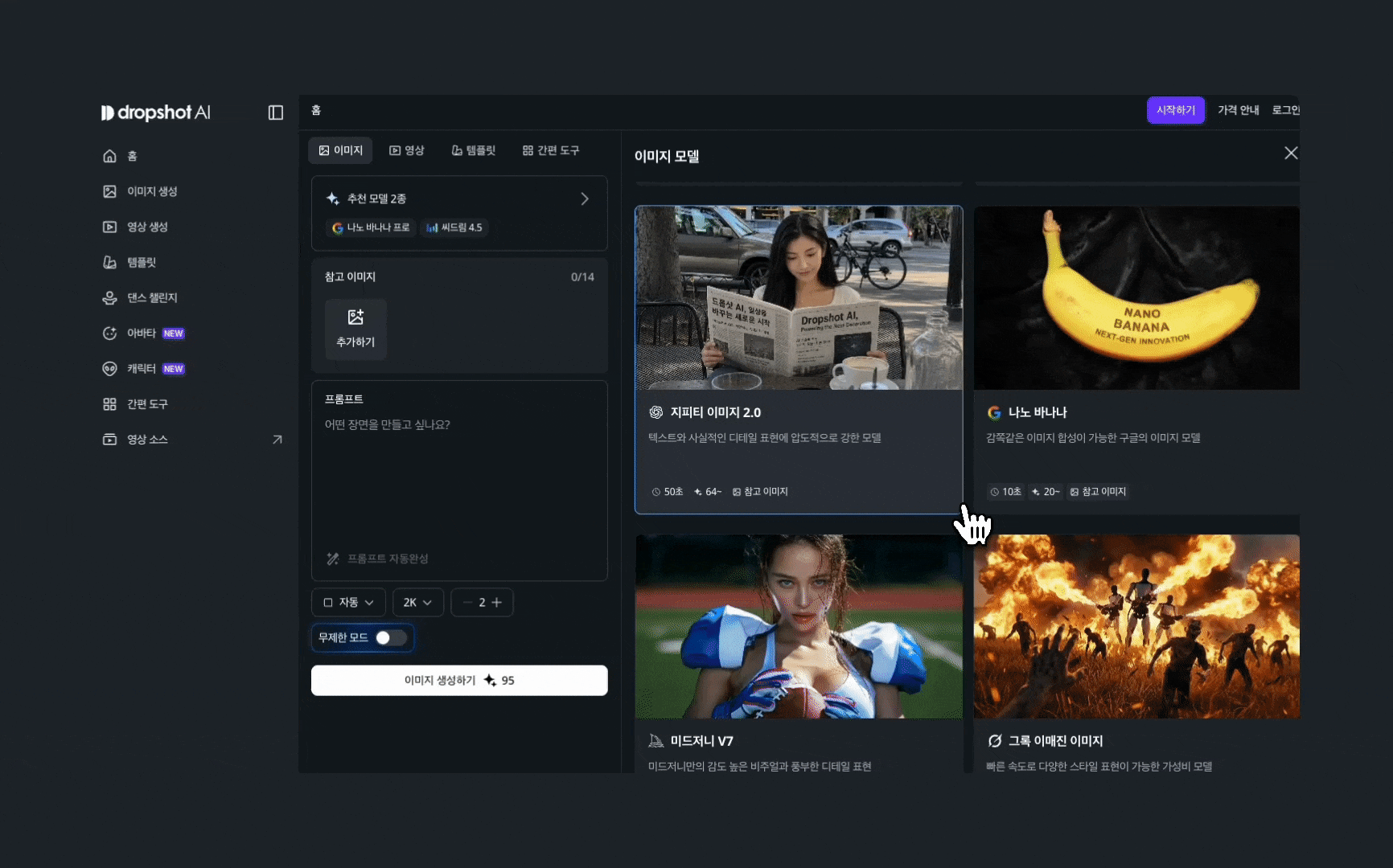 GPT 이미지 2.0과 씨댄스 2.0, 지금 드롭샷 AI에서 한국어로 만나보세요.