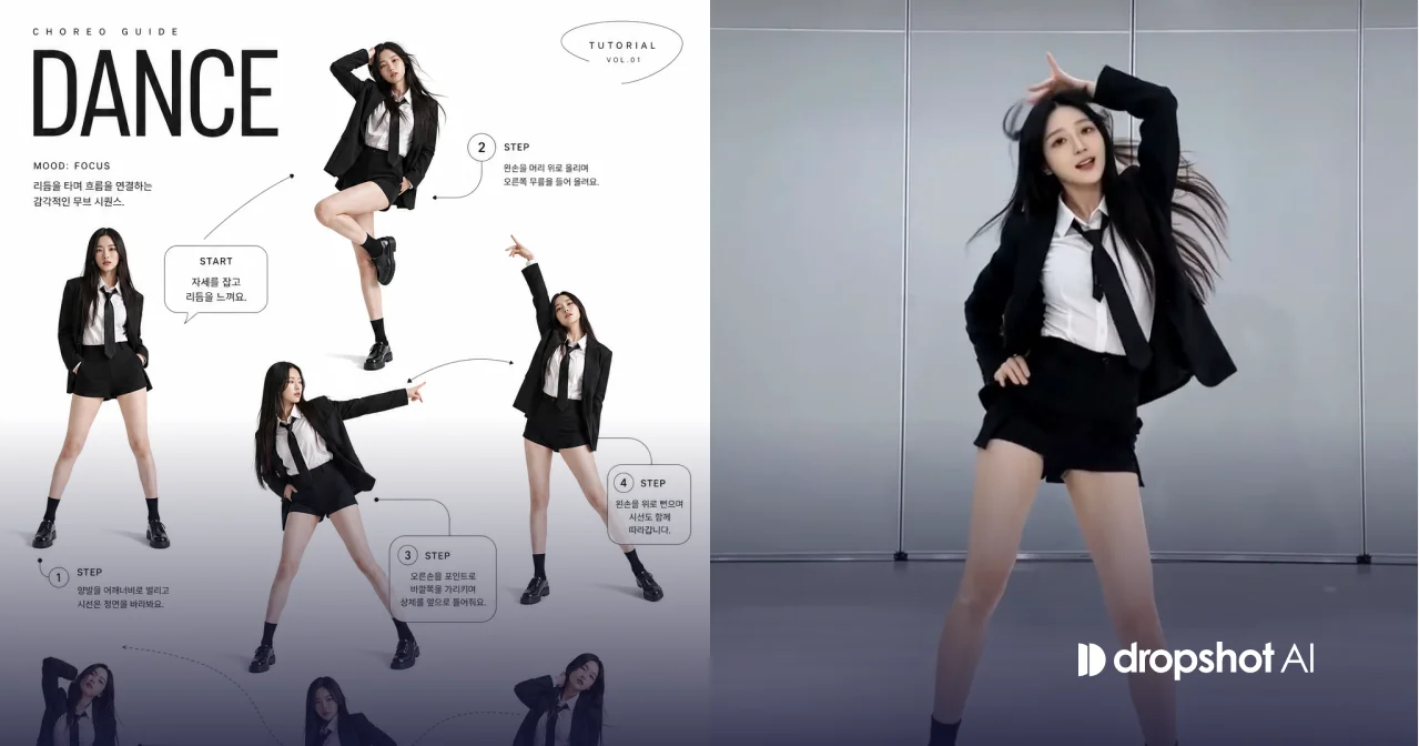 국내외로 대유행 중인 AI 댄스 챌린지, 한 곳에서 편하게 만들고 싶다면? 아래에서 무료로 프롬프트와 생성법 확인하고, 드롭샷 AI에서 한국어로 편하게 AI 쇼츠 제작해 보세요.