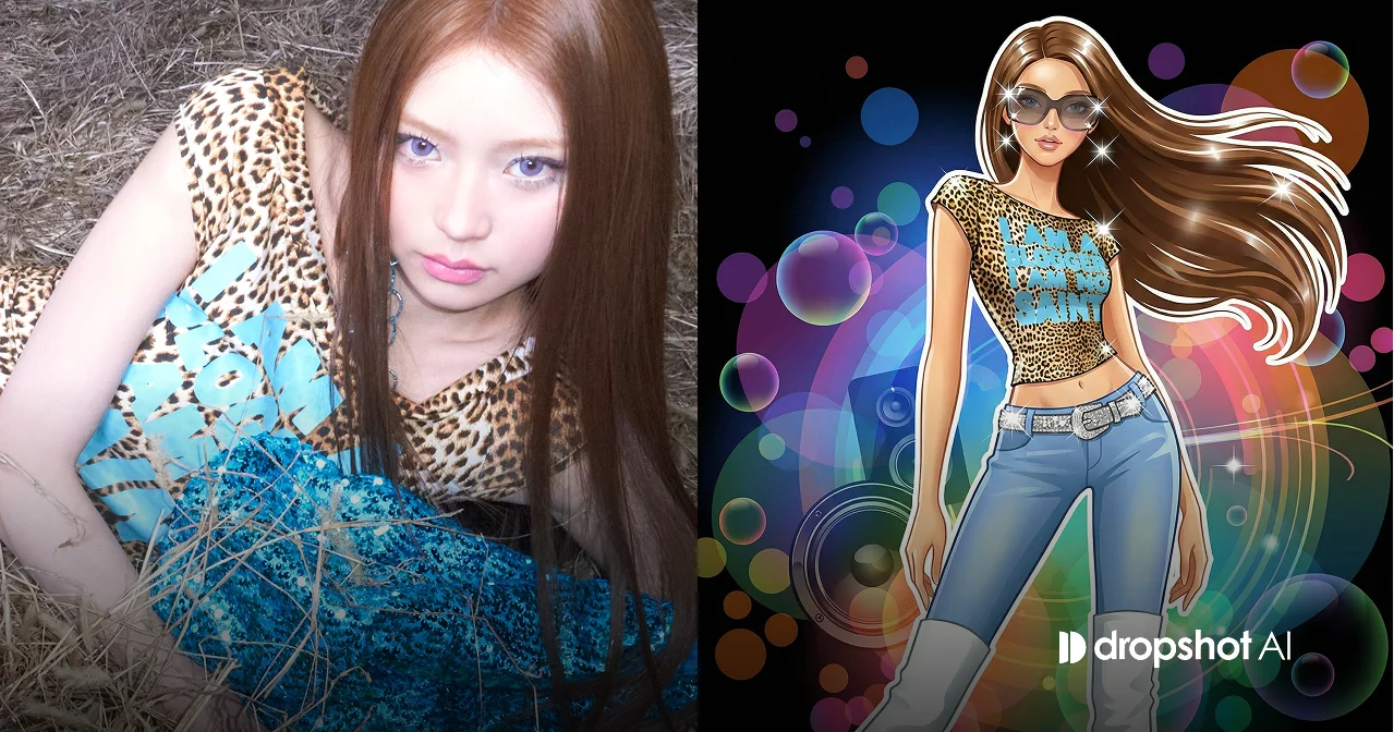 무테 일러스트 스타일의 패션 일러스트를 생성한다. 어떤 사진이 입력되더라도 입력 이미지를 인물의 기본 정체성으로 사용하며 얼굴 인상, 체형 비율, 헤어 길이와 분위기를 유지한 상태에서 전신 일러스트로 변환한다. 전체 분위기는 2000년대 초반 Hed Kandi 커버 아트 같은 섹시하고 글래머러스한 클럽 감성이다. 인물은 과장된 8등신 패션 모델 비율이며 데포르메가 강하게 들어가 얼굴은 작고 목과 다리가 길며 허리 라인이 비현실적으로 잘록하다. 피부는 매끈한 그라데이션으로 표현되고 윤곽선은 거의 없거나 매우 얇은 무테 일러스트 느낌이다. 그림은 벡터 기반의 깔끔한 그래픽 질감이며 팝아트·광고 일러스트 인상이 강하다. 의상은 반드시 입력 이미지 레퍼런스의 옷 디자인, 컬러 구성, 아이템 조합을 그대로 가져온다. 옷의 종류나 스타일은 변경하지 않고 오직 그림체와 표현 방식만 일러스트 스타일로 변환한다. 의상 표면에는 실제 옷 위에 그래픽을 합성한 듯한 프린팅 질감이 추가되며 프린트는 천에 자연스럽게 스며든 느낌이 아니라 스티커처럼 살짝 떠 있는 합성된 인쇄 질감으로 보이게 한다. 인물은 큰 오버사이즈 선글라스를 착용하며 렌즈는 어둡고 반투명해 안쪽의 눈이 흐릿하게 비친다. 렌즈 표면에는 강한 하이라이트와 별 모양의 과장된 스파클 반짝임이 들어간다. 머리카락은 바람에 휘날리듯 크게 흐르고 강한 글로시 하이라이트가 강조된다. 배경은 프루티거 메트로(Frutiger Metro) 감성의 추상적 그래픽 배경이다. 검은색이나 어두운 베이스 위에 형형색색의 원형 보케, 그라데이션 버블, 반투명한 컬러 레이어가 겹겹이 떠다닌다. 스피커, 원형 파형, 빛의 궤적 같은 추상적 실루엣이 은근히 섞인다. 전체 배경은 디지털·뮤직·시티 라이프를 상징하는 2000년대 초반 프루티거 메트로 스타일로, 화려하지만 인물보다 튀지 않도록 인물 뒤에서 빛나는 장식적 역할만 수행한다. 단, 배경에 한 구석에만 몰아져있다. 텍스트, 로고, 타이포그래피는 절대 포함하지 않는다. |