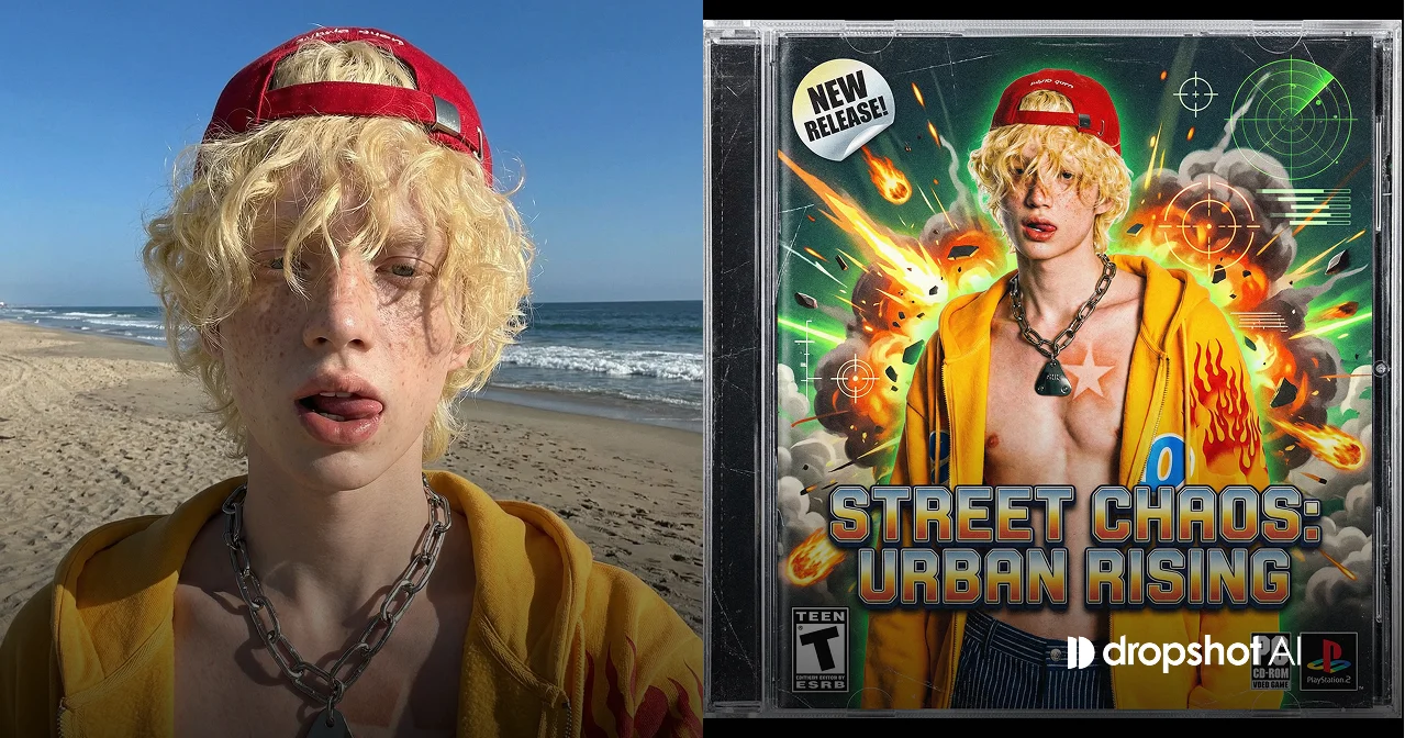 입력 이미지를 메인 비주얼 주제로 사용한다. 입력 이미지는 компози션에서 가장 지배적인 초점으로 유지되어야 하며, 피사체를 재디자인·재페인팅·재해석하지 않는다. 피사체의 정체성, 포즈, 비율, 표정, 전반적인 시각적 존재감을 입력 이미지와 정확히 동일하게 보존한다. 전체 콘셉트는 레트로한 2000년대 초반 비디오 게임 CD 커버 디자인으로, 스타크래프트, GTA 등 90년대 후반~2000년대 초반의 클래식 PC·콘솔 액션 게임에서 영감을 받는다. 스타일은 시끄럽고, 폭발적이며, 과장되고 시각적으로 공격적인 느낌을 지닌다. CD 케이스 프레이밍은 매우 중요하다. 아트워크는 실제 게임 CD 주얼 케이스 또는 DVD 케이스 안에 담겨 있어야 하며, 투명한 플라스틱 가장자리, 힌지, 반사, 눈부심, 미세한 스크래치가 분명히 보여야 한다. CD 케이스 프레임은 아트워크를 완전히 둘러싸고 있어야 하며, 실제 매장에서 판매되는 물리적인 게임 CD라는 인상이 명확히 전달되어야 한다. 메인 아트워크에서는 입력 이미지가 커버 아트 영역 대부분을 채우고, 피사체는 플레이 가능한 메인 캐릭터로 취급된다. 피사체는 깨끗하고 가독성 있게, 그리고 가장 지배적으로 보여야 하며, 배경 요소는 시각적으로 폭발해도 피사체를 압도하거나 대체해서는 안 된다. 무기는 현실적인 형태로 캐릭터의 장비 일부나 시각적 아이콘으로 등장할 수 있으나, 겨냥·발사·공격 동작은 없고, 메고 있거나, 홀스터에 있거나, 쉬고 있거나, 일부만 보이는 상태여야 한다. 배경은 대규모 그래픽 폭발, 불꽃, 충격파, 파편 분출, 스타일화된 연기와 에너지 블래스트, 날아다니는 조각과 스파크, 라이트 스트릭 등 과장되고 게임적인 효과로 가득 차야 하며, 현실적인 폭력이 아닌 클래식 커버 아트 특유의 스펙터클을 지향한다. HUD 스타일의 타겟팅 서클, 크로스헤어 그래픽, 에너지 링, 스피드 라인, 레이더 오버레이가 피사체 주변에 떠다닐 수 있고, 전체적으로 과도하고 레이어드된 혼란스러움이 느껴져야 한다. 강렬하고 공격적인 타이틀 타이포그래피, 올드 게임 커버 특유의 고대비 로고와 라벨, 가짜 등급 배지·연령 아이콘·플랫폼 라벨·경고 스티커가 모서리에 배치되며, “Player 1”, “Action”, “Open World”, “New Release” 같은 스티커도 선택적으로 포함된다. 색감은 고채도, 강한 대비, 불타는 오렌지·전기적 그린·네온 옐로·딥 블랙을 사용하고, 약간 압축된 거친 인쇄 질감과 2000년대 초반 디지털 디자인의 불완전함을 살린다. 구성은 정면의 평면적인 리테일 게임 커버 시점이며, 현대적인 미니멀 UI나 리얼한 폭력 묘사는 금지되고, 입력 이미지는 끝까지 커버의 확실한 주인공으로 남아야 한다. |