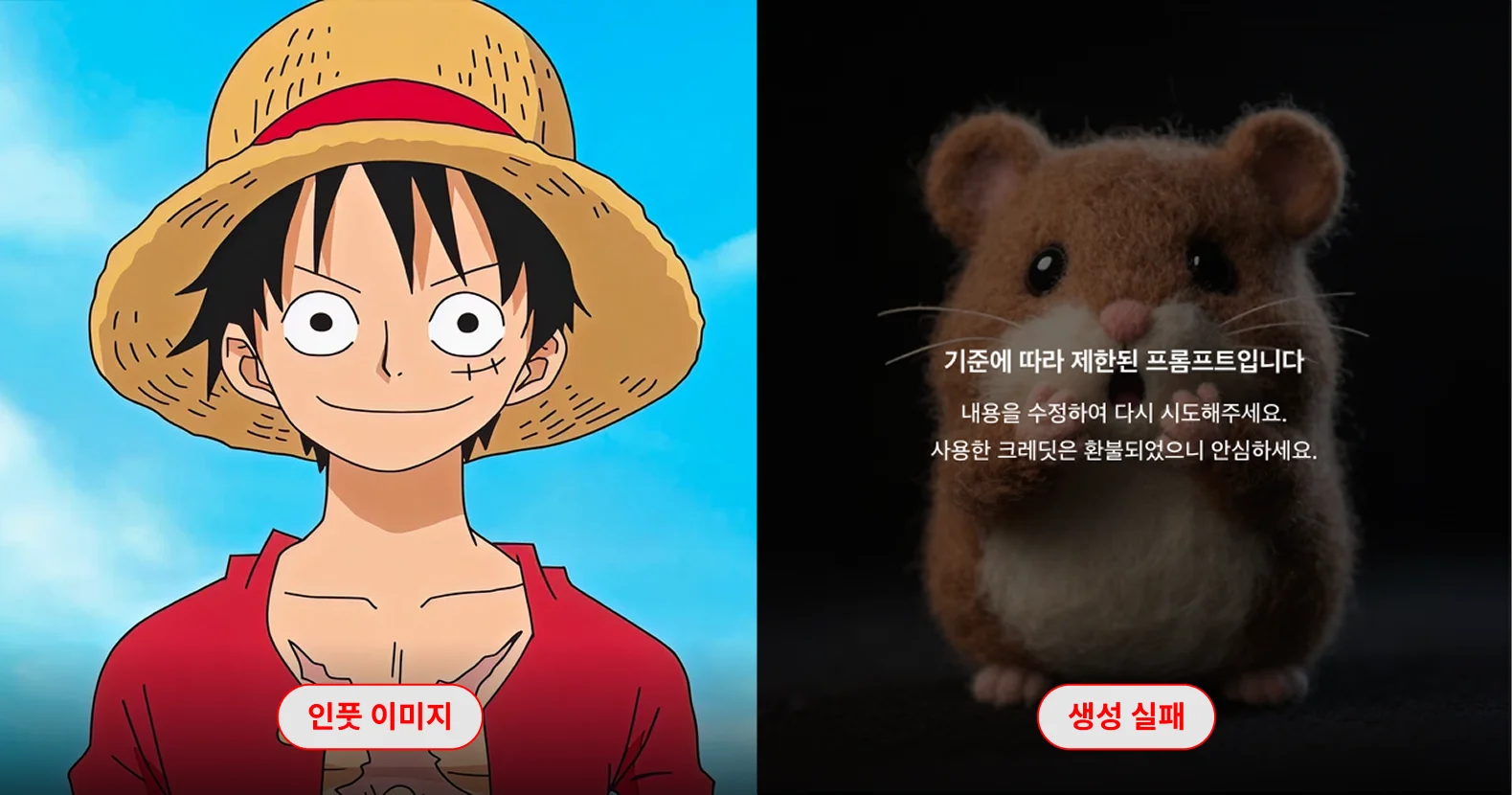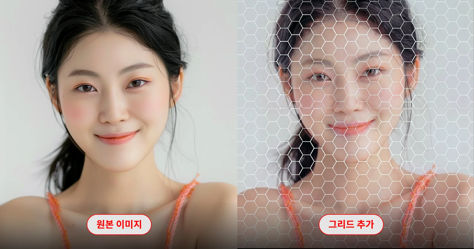 이 방법은 저작권이 있는 타인의 콘텐츠를 사용하기 위한 것이 아니라, 모델의 민감한 필터링으로 잘못 걸러지는 이미지를 보완하기 위한 접근법입니다. 유명 IP나 연예인처럼 저작권이 명확한 대상은 그리드를 적용해도 제한되거나 실패할 가능성이 높습니다.