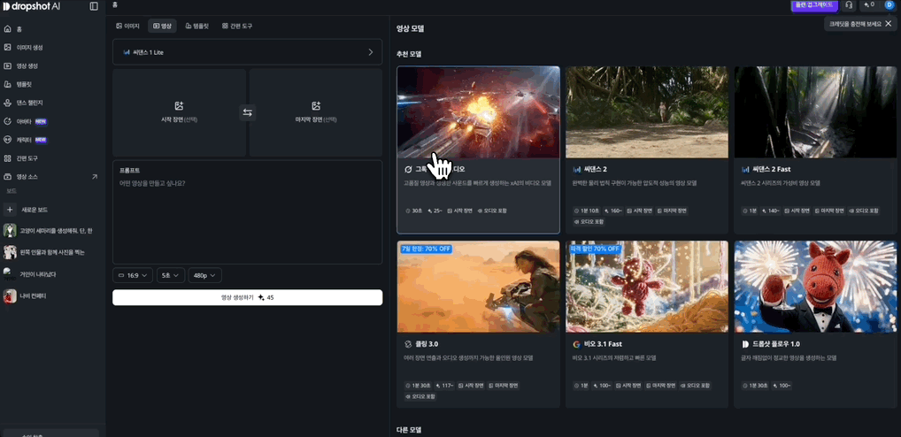 드롭샷 AI에서는 복잡한 설정 없이 프롬프트만 입력하면, 다양한 AI 영상 모델을 자유롭게 활용해볼 수 있습니다. 여러 스타일과 연출을 빠르게 실험하고, 나만의 영상 결과물로 확장해보고 싶다면 지금 드롭샷 AI에서 직접 체험해보세요!